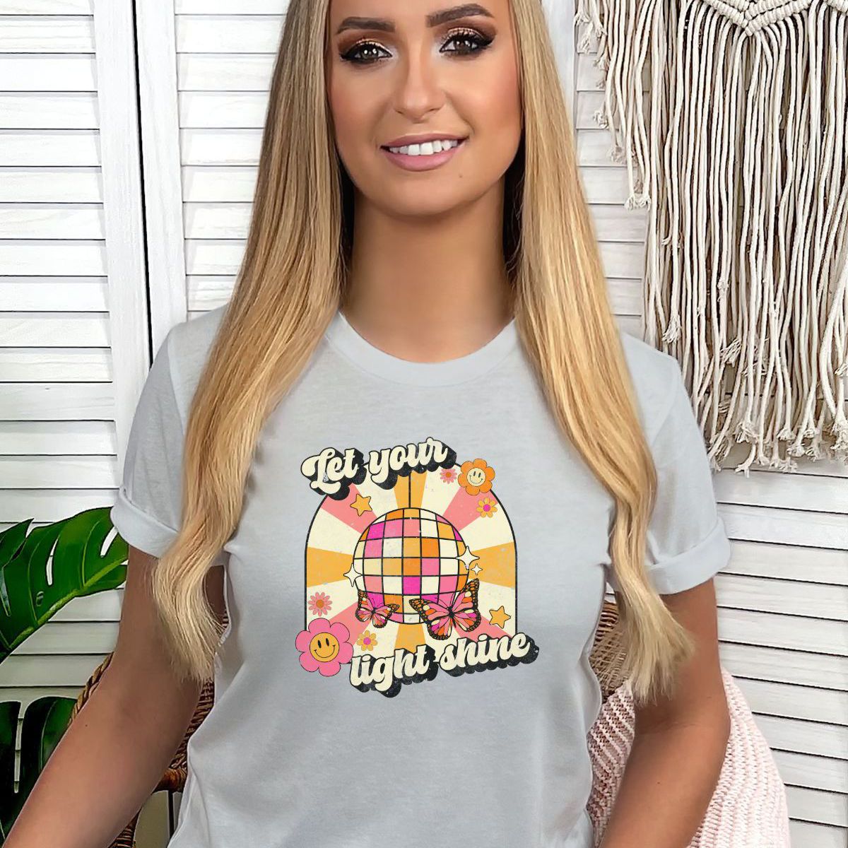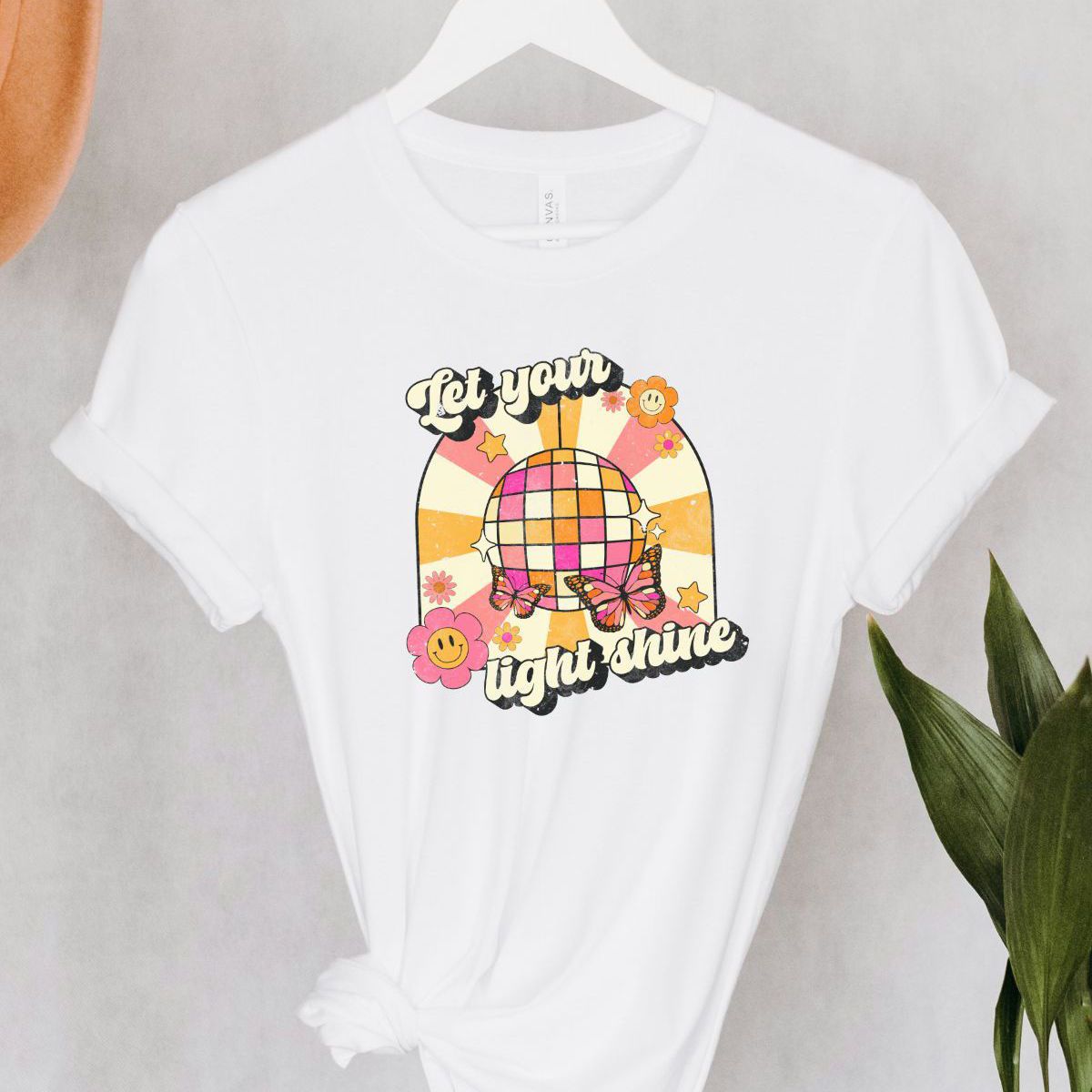 Experience comfort and style with this women's t-shirt featuring a Let Your Light Shine design. Crafted from super soft material and high quality printing this shirt provides both comfort and durability. Perfect for casual wear the shirt is printed and shipped from Los Angeles ensuring quality and satisfaction.